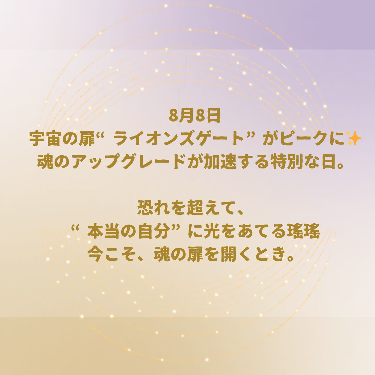 ✳︎毎年7月26日頃から8月12日頃まで開くとされるスピリチュアルなエネルギーポータルのことです。特に、8月8日(8/8)は、「宇宙からのエネルギーが最も強く注がれるピークの日」となります。