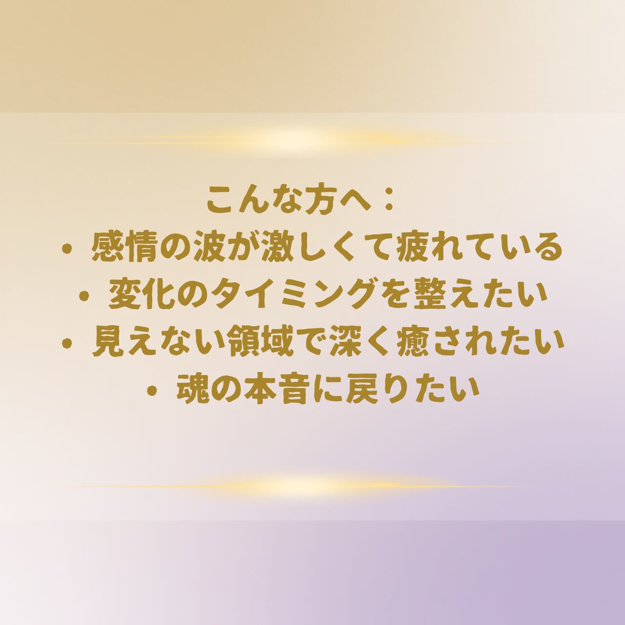 エネルギーに敏感な方や、人生の再構築中の方に特におすすめです。